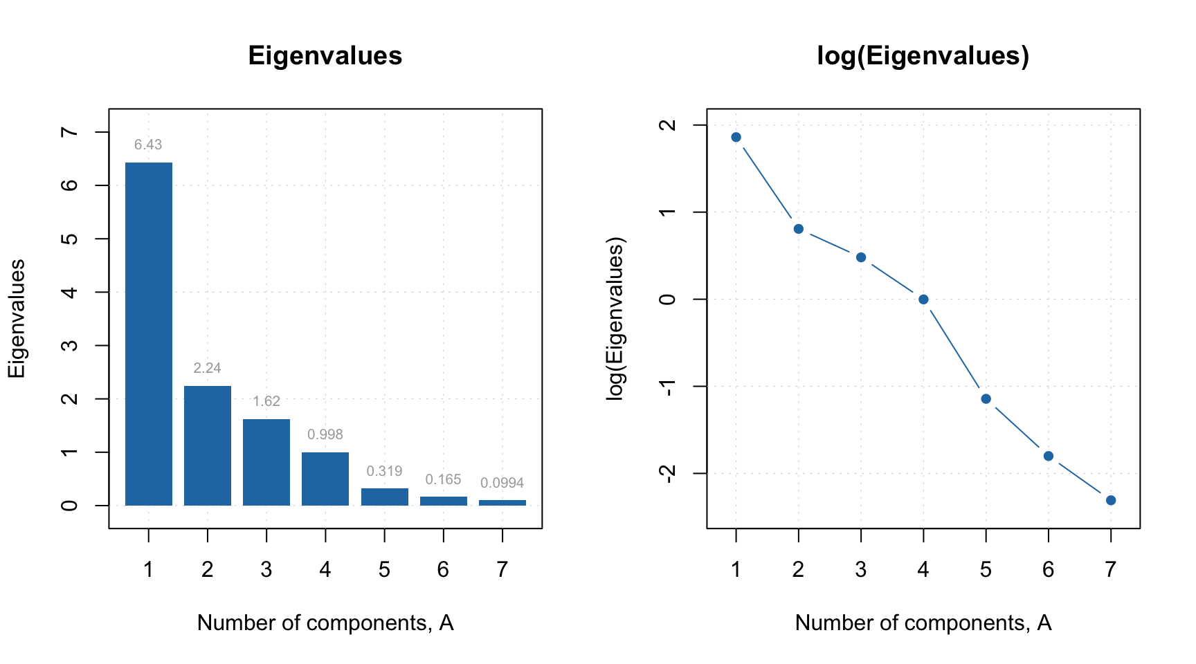 There is also a possibility to plot model’s eigenvalues vs. number of components, either raw or transformed using log or sqrt transformation: